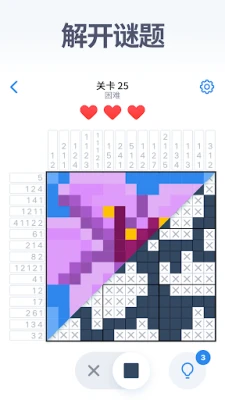 即使是初次接触这类"图片交叉谜题"的玩家也能迅速掌握 Nonogram 的精髓。游戏目标简单明了:根据网格边缘的数字线索,逐一涂色或标记空白单元格,最终揭示隐藏在网格中的精美图像。每个数字代表该行或该列中连续涂色方块的数量和顺序,它们之间至少间隔一个空白方块。当您在解谜过程中遇到瓶颈时,贴心的提示功能随时为您提供帮助;而自动打叉功能则能智能标记不应涂色的单元格,让您的解谜过程更加流畅高效。
