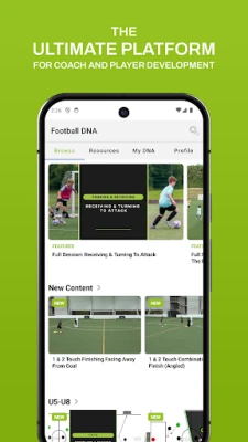 Football DNA App 旨在助力各级别足球教练和球员提升技能。我们提供经验丰富教练的独家高质量视频内容,轻松浏览超过1000个从U5到成人足球的训练资源。所有内容均由UEFA许可教练打造,确保你永远拥有新想法和灵感。